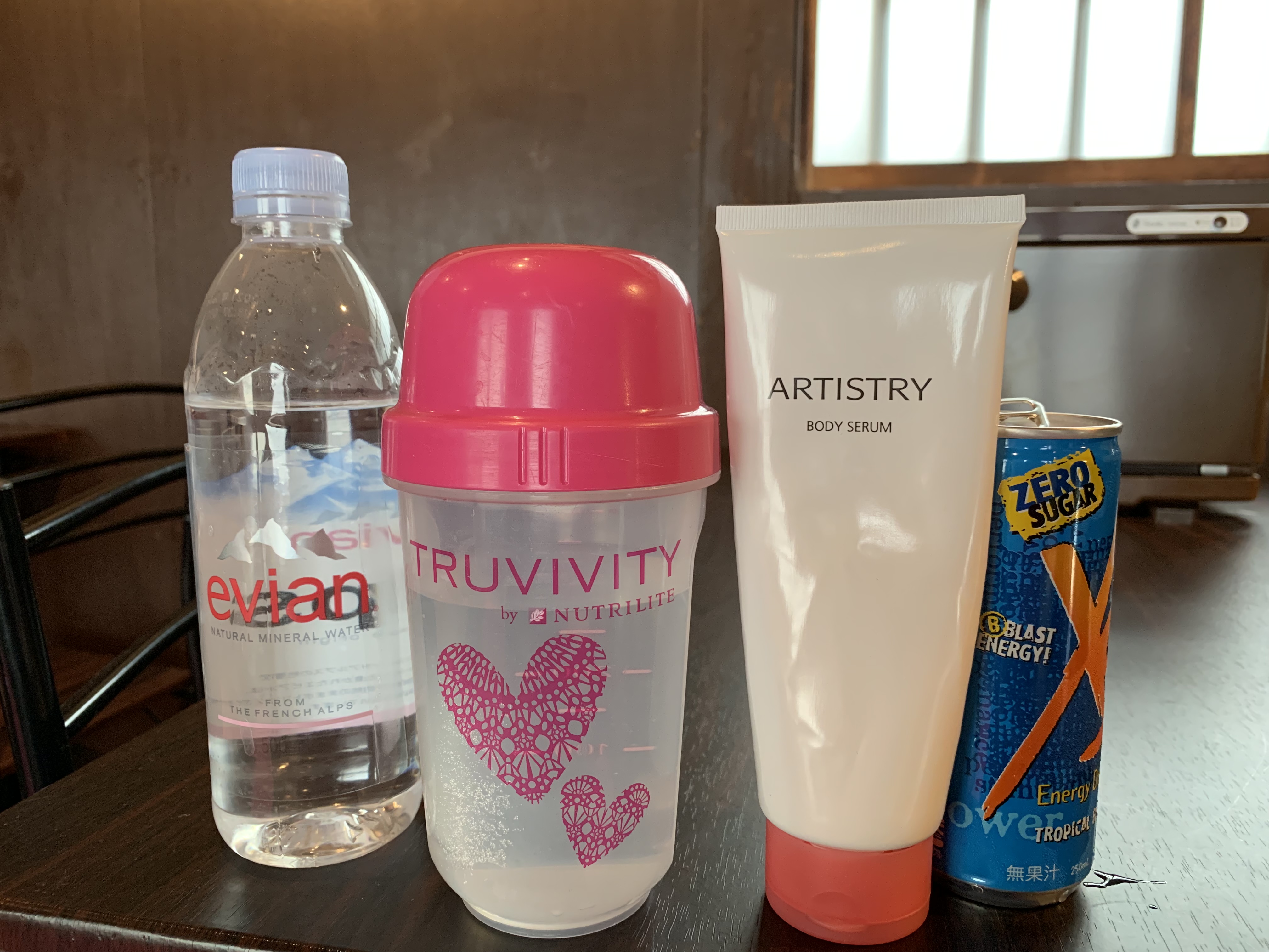 こんな飲み物やマッサージクリームたちとともに
