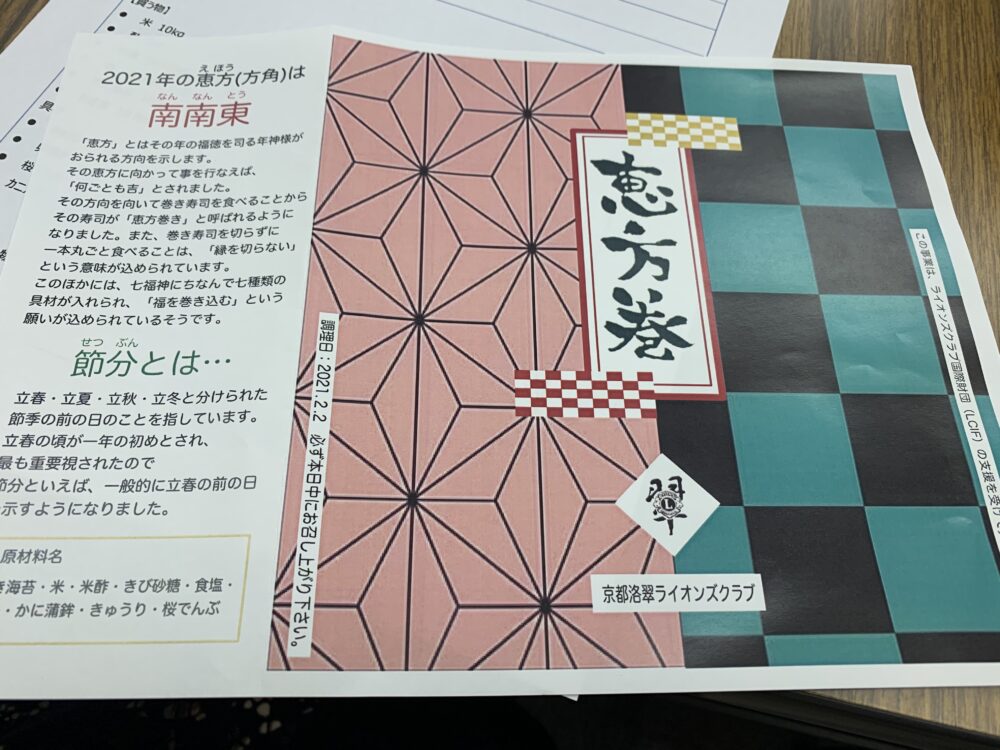 恵方巻を100本届けて配布するという