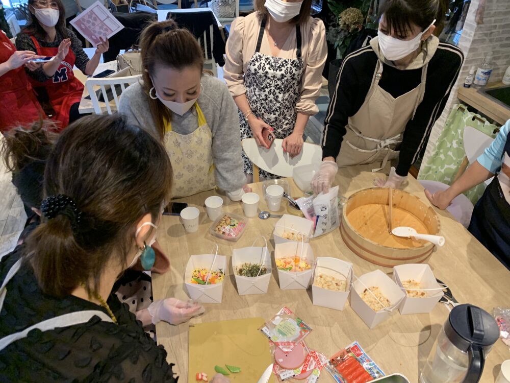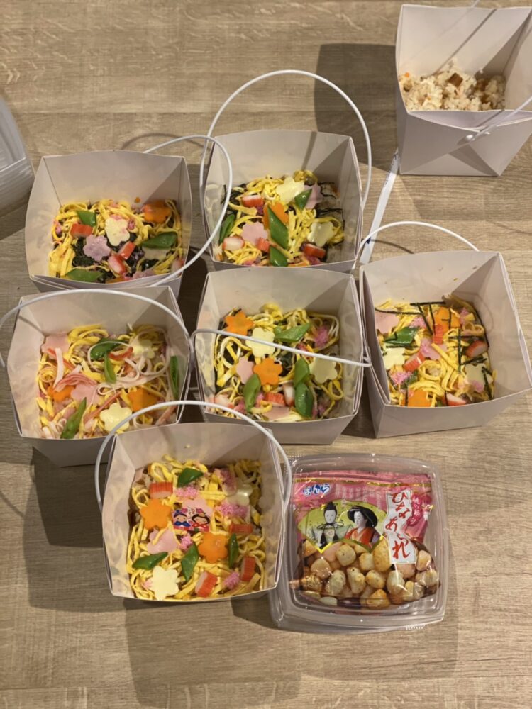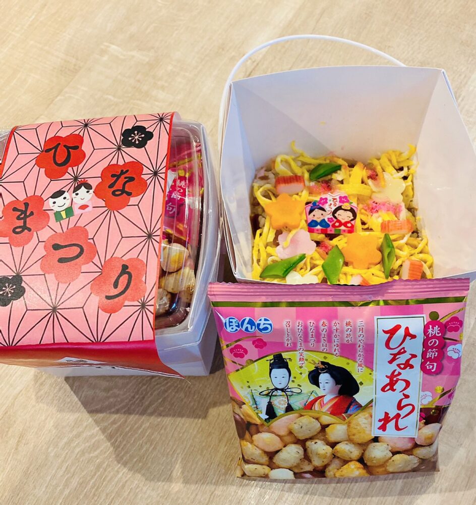 可愛く飾ったちらし寿司+ひなあられを付けて