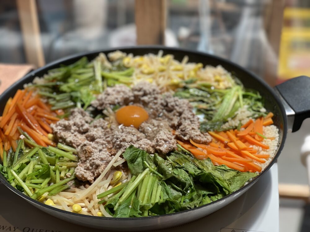 ビビンバ!フライパンにいきなり米から入れて