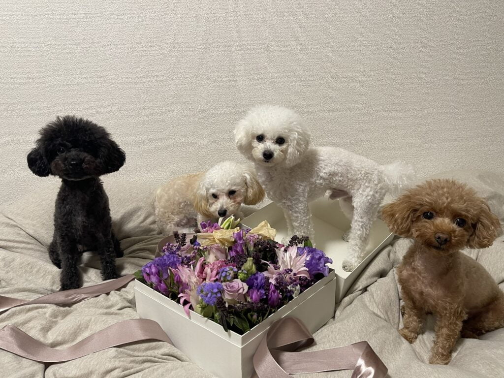 犬たち全員集合写真も🌸